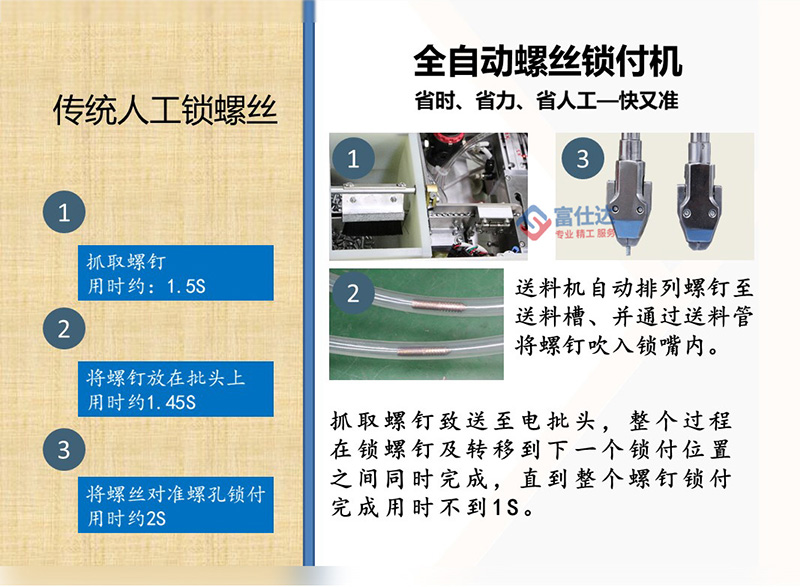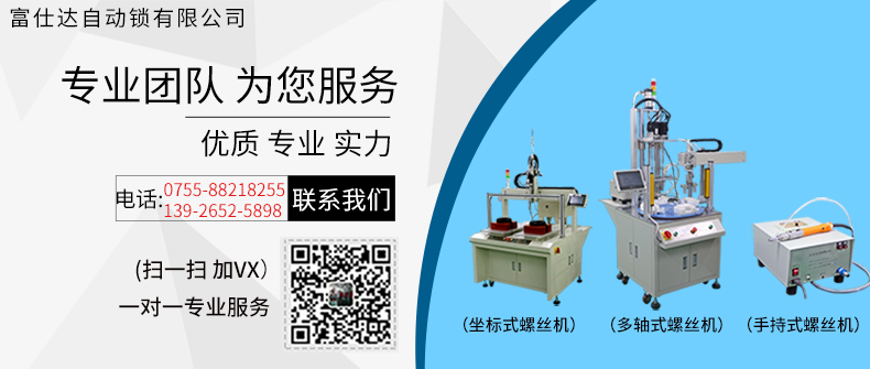 深圳市富仕達自動化設備有限公司是國內領先的以自動鎖螺絲設備為核心的自動化設備制造商,堅持以客戶需求為中心,定制自動化鎖螺絲方案,已有超過4000家企業采用富仕達定制的自動鎖螺絲設備實現“機器換人”,節省大量人力成本。