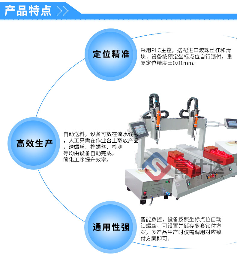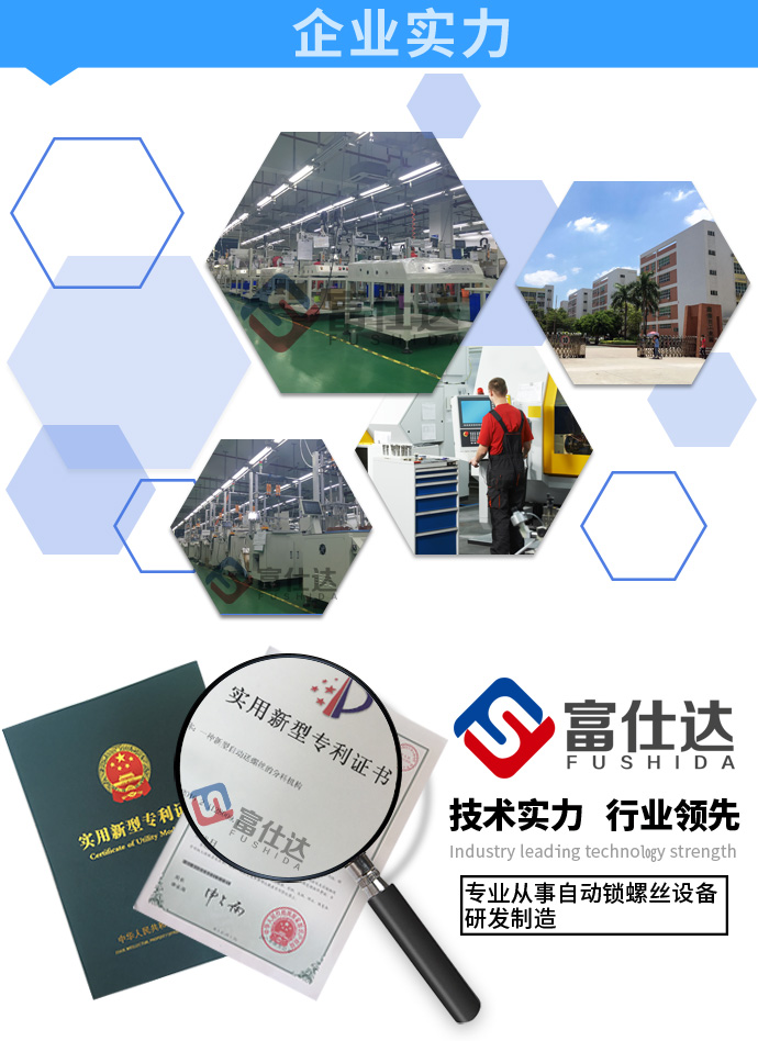 深圳市富仕達自動化設備有限公司是國內領先的以自動鎖螺絲設備為核心的自動化設備制造商,堅持以客戶需求為中心,定制自動化鎖螺絲方案,已有超過9000家企業采用富仕達定制的自動鎖螺絲設備實現“機器換人”,節省大量人力成本。