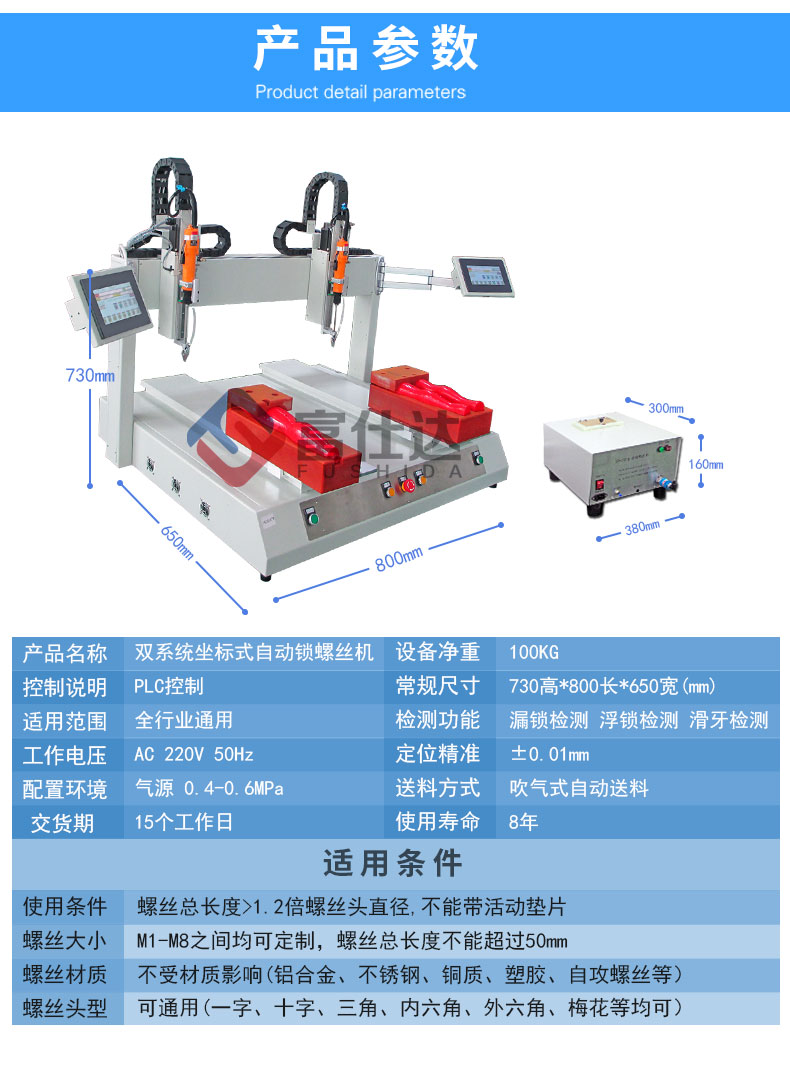 富仕達自動鎖螺絲機尺寸可根據產品尺寸大小及生產線情況來設計,定制真正好用的自動鎖螺絲設備。
